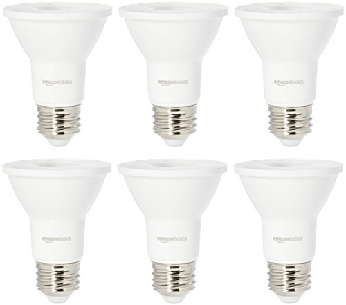 AmazonBasics 50 Watt Equivalent, Bright White, Dimmable, PAR20 LED Light Bulb - 6 Pack