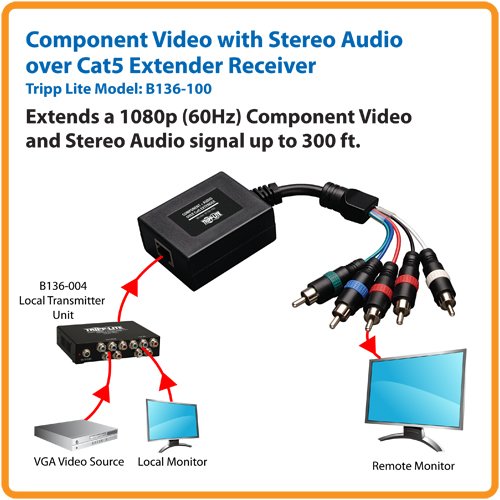 A 480p (60Hz) Component Video and Stereo Audio signal can be extended up to 500 ft. when using 24Awg, Solid Wire UTP cable (Tripp Lite N202-Series); or, up to 700 ft. when using Zero-Skew UTP cable (Tripp Lite P524-01K)