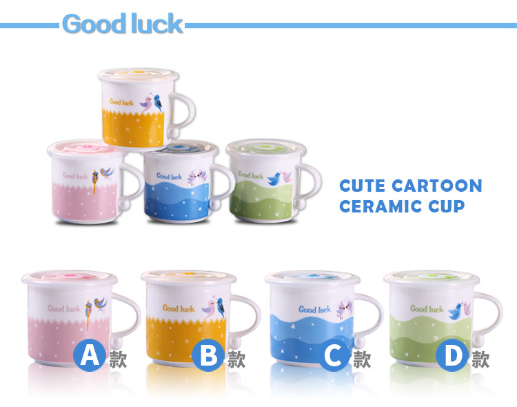 可爱陶瓷杯子 创意粉系水杯 咖啡杯水杯马克杯带盖情侣杯茶杯礼物