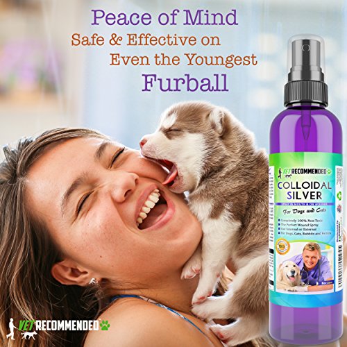 -. Feature : 100% SAFE, NON-TOXIC & HEALING: Spray externally for wounds, burns, cuts, bites, as a dog hot spot treatment and other irritations. Can be used internally for dogs water bowl or directly into mouth. / ANTI-VIRAL & ANTI-BACTERIAL: Effective against nearly every germ, bacteria, virus or fungus and is more effective than a colloidal silver cream and is simple to apply and can help dog dry skin dogs. / POSITIVELY CHARGED: Vet Recommended Pet Colloidal Silver contains 98% positively charged silver. Most silvers contain at best 10% charged silver, therefore they are not as powerful. / THE STATS: Provides better coverage area, making our 10 ppm solution more effective than competing brands of much higher ppm. It contains an unprecedented particle size of 0.8 nm/0.0008 microns. / PURE FORMULATION: 99.999% pure silver & pharmaceutical grade purified water. Environmentally friendly PET bottle so no leaching into the formulation. PETS ARE NATURALLY DRAWN TO OUR COLLOIDAL SILVER.