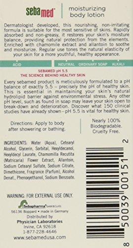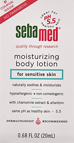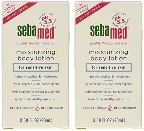 -. Binding : Misc. -. Brand : Sebamed -. Feature : Travel size - .68 oz - 20ml. / Readily absorbed without greasy residue. / Active moisturizing complex nourishes and preserves the natural moisture balance of the skin. / Camomile extract and allantoin soothe the skin making it soft and supple / Daily body care tones the skin and refreshes its appearance. -. ProductGroup : Beauty -. ProductTypeName : BEAUTY -. Title : Sebamed Sensitive Skin Moisturizing Body Lotion Travel Size 20 ml