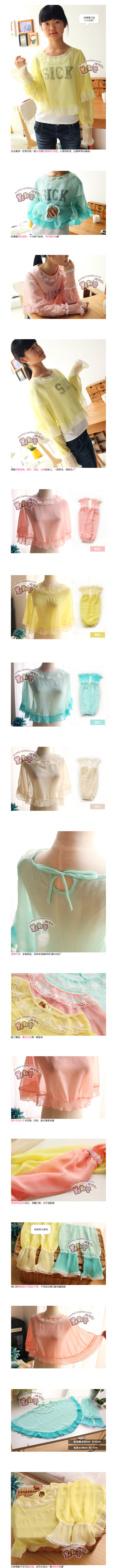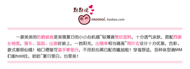 宝贝名称 清甜雪纺荷叶边防晒披肩+袖套  材   质   雪纺