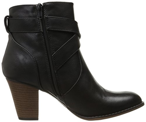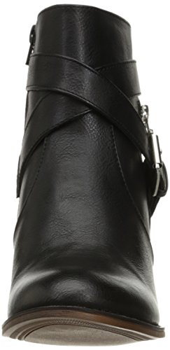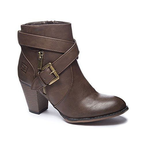 Product DescriptionStacked heel ankle bootie with crossover straps and buckle0
