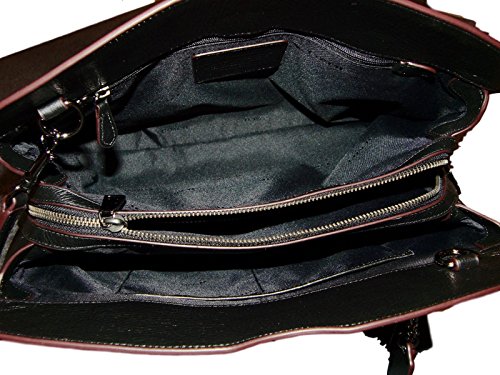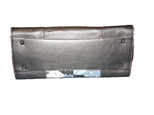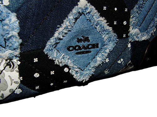 -. Feature : Patchwork denim, grain leather / Inside zip, cell phone and multifunction pockets; interior full length center zip / Turnlock closure, fabric lining / Removable, adjustable crossbody strap with 20" drop; handles with 5'' drop / Approximately: 14" (L) x 9 ¼"(H) x 7" (W)