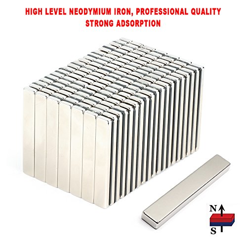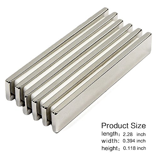 Kyson 6 Pieces Magnetics Strong Rectangular Neodymium Magnets Bar Heavy Duty Rare-Earth NdFeB Permanent Magnets for DIY Building Scientific Craft Office - 60 x 10 x 4 mm Grade 35