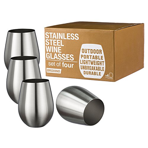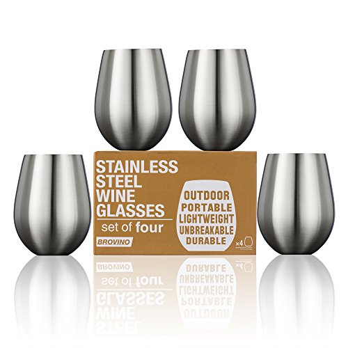 (Brovino)/Pet Supplies/Feeding Watering Supplies/DIRECT FROM USA/Stainless Steel Stemless Wine Glasses Set of 4 - 100% Unbreakable Shatterproof Metal Drinking...