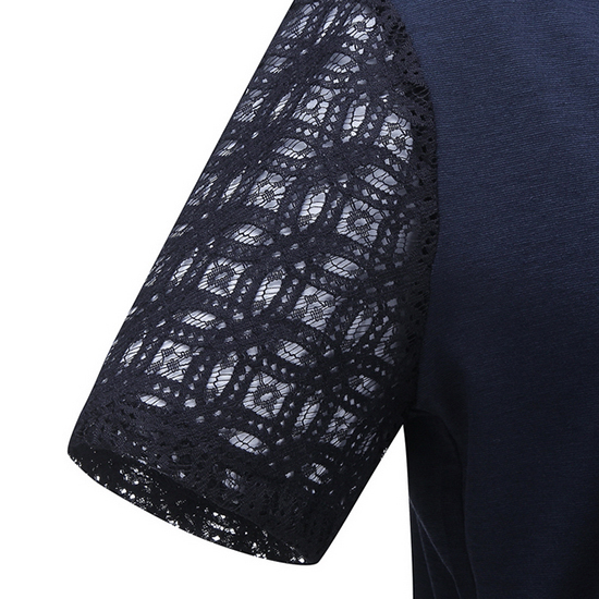 - 레이스 믹스 디자인에 오픈 카라로 페미닌한