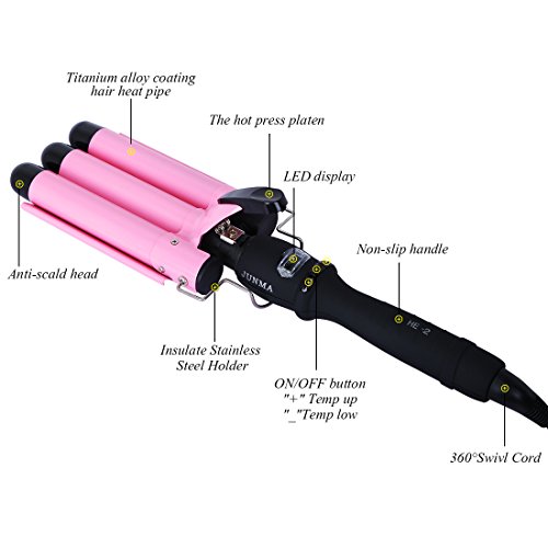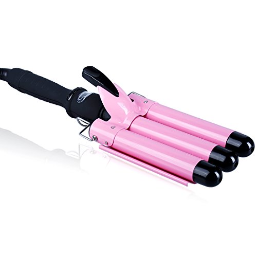 [New Version] Professional Hair Curling Iron for Long Hair with LCD Display Deep Waving Irons Fast Heating Wavy Curling Salon Styler Hair Curler Wand 3 Barrel, Pink