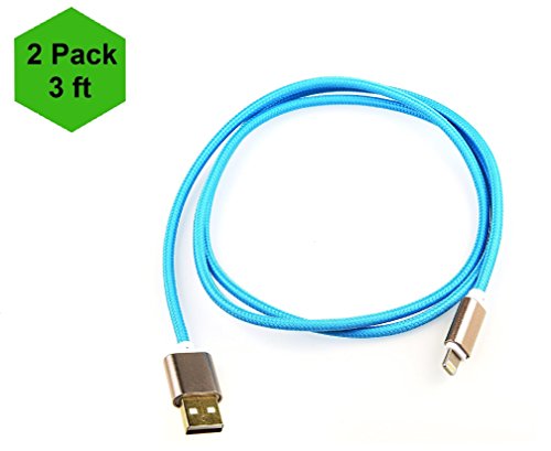 iProtect 2-Pack 3ft Nylon Braided Design 8-Pin Lightning Fast Charging and Sync Cable for Apple iPhone 7 7 Plus / 6 6s 6 Plus / 5 5s 5c / SE / iPad / iPod and More - Blue