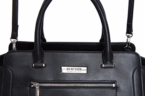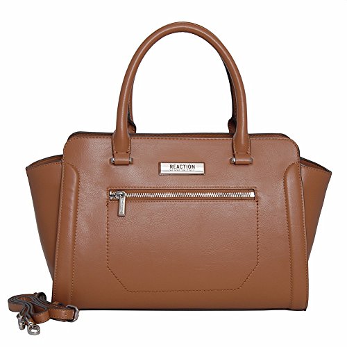 -. Brand : Kenneth Cole REACTION -. Department : womens -. Feature : • Rich Soft Faux Leather. Top Zip Closure / • New Reaction Kenneth Cole Name Plate. Size 12.5/15" X 9" X 5". / • Easy to carry over the shoulder with a Crossover Removable Shoulder Strap. / • Large Front Zipper Pocket / • 1 interior zipper pocket , 2 open pockets for extra storage with 1 Open V shape easy access inner Slot -. ProductGroup : Shoes -. ProductTypeName : HANDBAG -. Title : Reaction Kenneth Cole Victoria Satchel Double Handle Bag