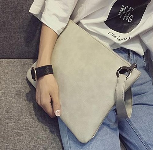 -. Feature : Import>Handbags Type: Evening and Daily Clutches>Material: PU leather.>Lining Material: Polyester / Interior: Interior 1 Zipper Pocket, Interior 2 Slot Pocket / Size: (W)13.5 x (H)9.7x (D)0.5 inches>Weight: Only 0.4 pounds weight. / Pattern Type: Solid ( black, mint, red, gray) / A big clutch that can not only be an evening party bag, but also can be a ladies everyday purse.