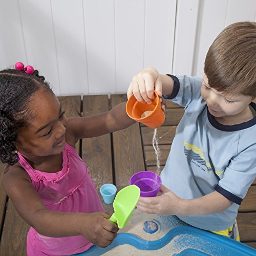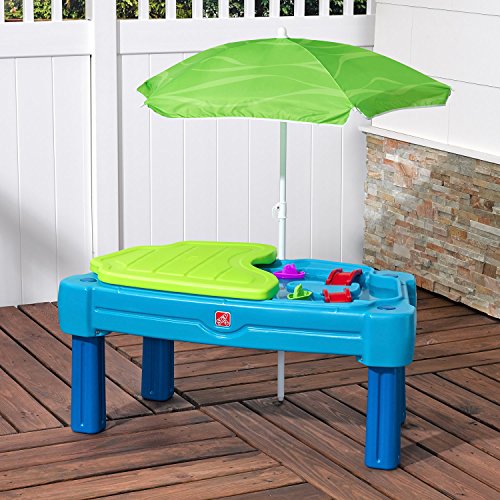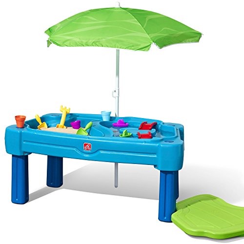 The cascading Cove sand and water playset will have little ones believing they’re sailing the seven seas or digging for buried treasure in sand! this brightly colored; all-in-one kid’s play table provides hours of pretend play fun for all! kiddos can build sand castles on one side and sail toy boats on the other. This sand and water table features a large, shady umbrella that will provide children with hours of outdoor play. Let the imaginative play fun begin with Step2. Made in USA of us and imported parts.Feature