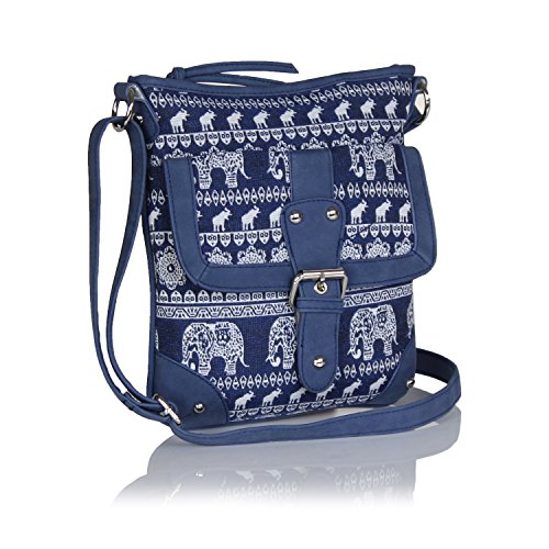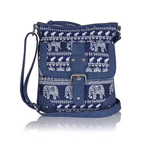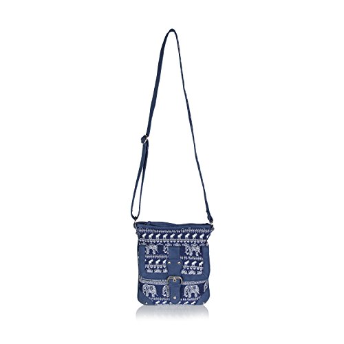 -. Feature : Elephant Aztec Tribal Crossbody bag, Flap over front pocket with buckle, snap closure / Cute canvas purse measures 9 inches deep x 8.5 inches wide, fits small tablet, wallet, phone, keys, etc / Fabric lined interior contains two slip pockets and one zippered pocket / Faux leather adjustable strap up to 25.5 inch drop, worn over the shoulder or across the body / Top zip closure keeps your valuables secure when you are on the go!