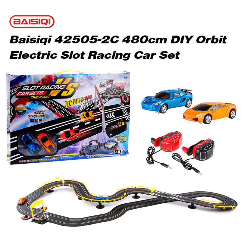 Specifications: Brand name: Baisiqi Brand model: 42505-2C Item name: RC electric slot racing car set Car size: 10.0cm * 5.0cm * 3.4cm Car's weight: 36g Total length of the rail: 480cm