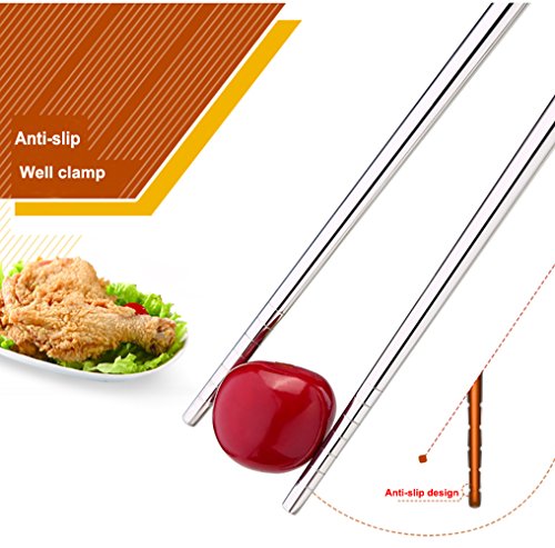 Product Characteristics: Lightweight design to make you hold them easier and more comfortable; vacuum design inside to prevent heat from the food burning your hand, also lighten the weight of the chopsticks, you will not feel tired after long time usage