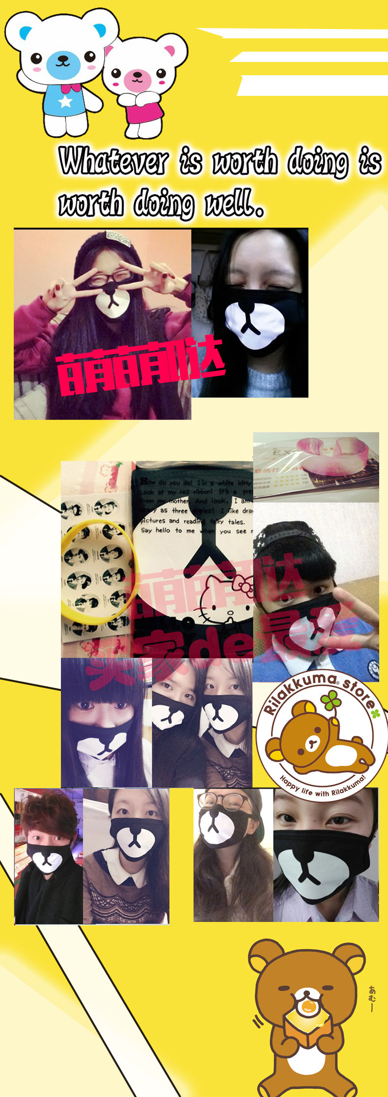 EXO同款口罩林朴灿烈机场同款小熊图案口罩个性情侣口罩可爱口罩?