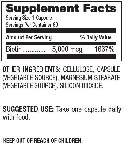 -. Title : Natural Nutra - Premium Biotin Supplement - 5000 mcg - Healthy Hair, Skin, and Nails - Made in the USA - All Natural - Vegetarian - Vegan - Gluten Free - 60 Capsules