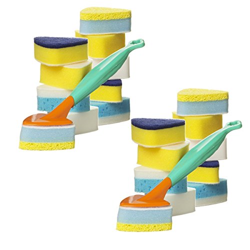 - Includes: (1) 22pc Smart Home Cleaning Tool includes: (2) Plastic Handles, (20) Sponge Heads (2 Packs Of 10 Sponge Heads & 1 Handle), New