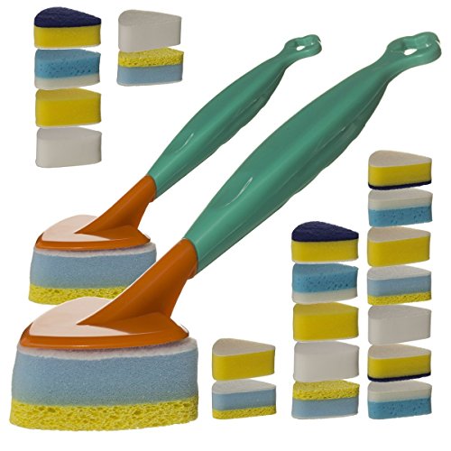22pc Multi Purpose Kitchen Sponge Scrub Brush Set Handle Heads Cleaning Bathroom Refills Dish Wash