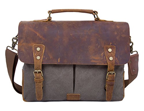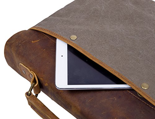 -. Binding : Textilien -. Brand : ECOSUSI -. Feature : Größe: 36 x 10 x 28 cm / Material: dicker Canvas + Rindsleder / Verstellbarer und abnehmbarer Schultergurt, nicht gepolstert / Ein Hauptreißverschlusstasche mit gepolstertem Laptopfach und 2 grosse Fronttaschen / Die Tasche ist super geeignet für die Arbeit oder Studentenalltag. Durch die gute Verarbeitung bewährt er sich auch in der Freizeit oder auf Reisen -. ProductGroup : Apparel -. ProductTypeName : ACCESSORY -. Title : Ecosusi Herren Damen Leder Tasche Messenger Bags Handtasche Aktentasche schultertasche Umhängetasche
