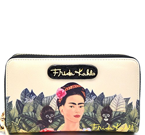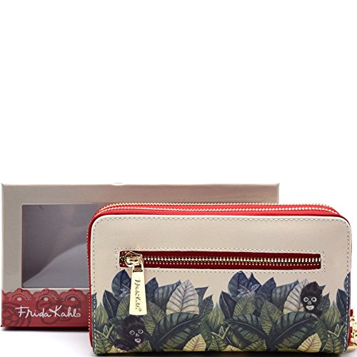 -. Title : Authentic Frida Kahlo Jungle Series 2-Zipper Compartment Wristlet Wallet- Black