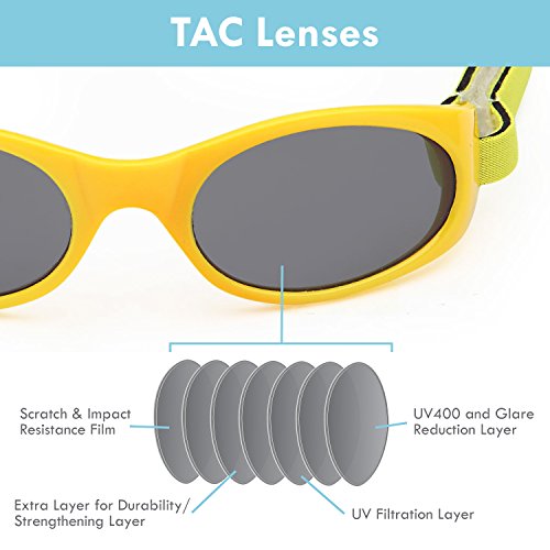 TRUST OPTICS Toddler Baby Kids UV400 Sunglasses with Two Adjustable Straps and Case - Choose Your Color