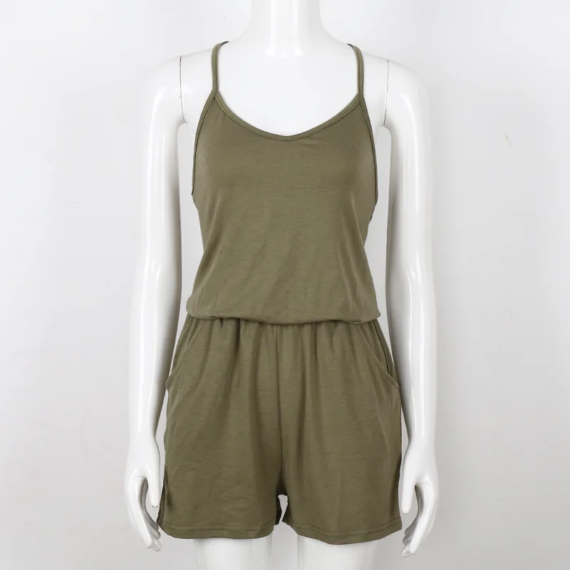spaghetti strap v-neck jumpsuit: women sleeveless v-neck romper