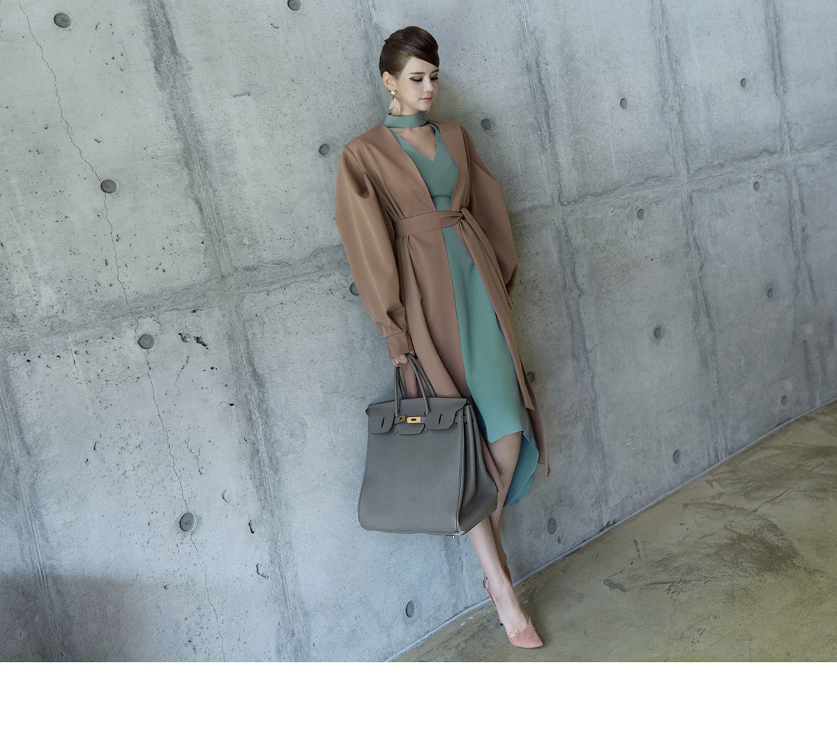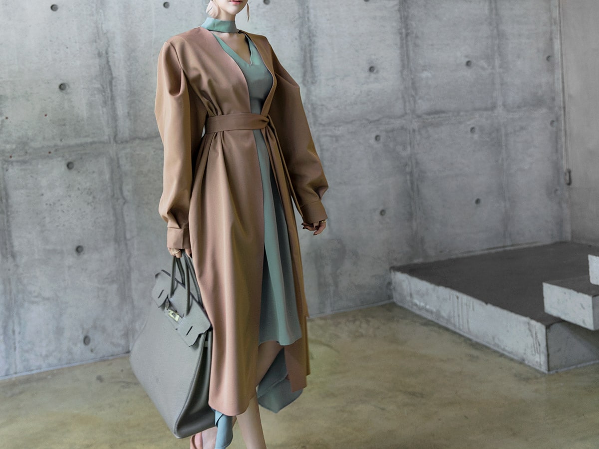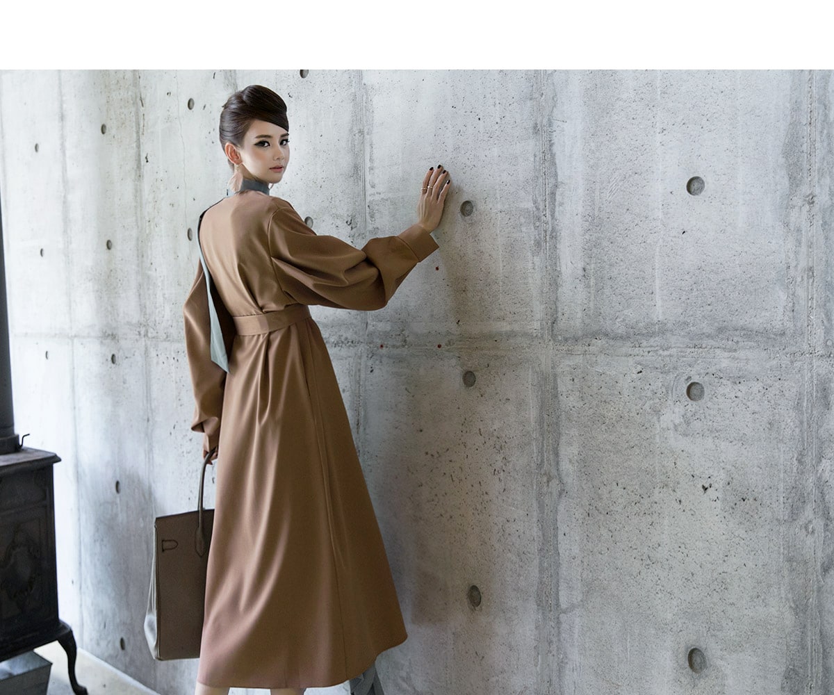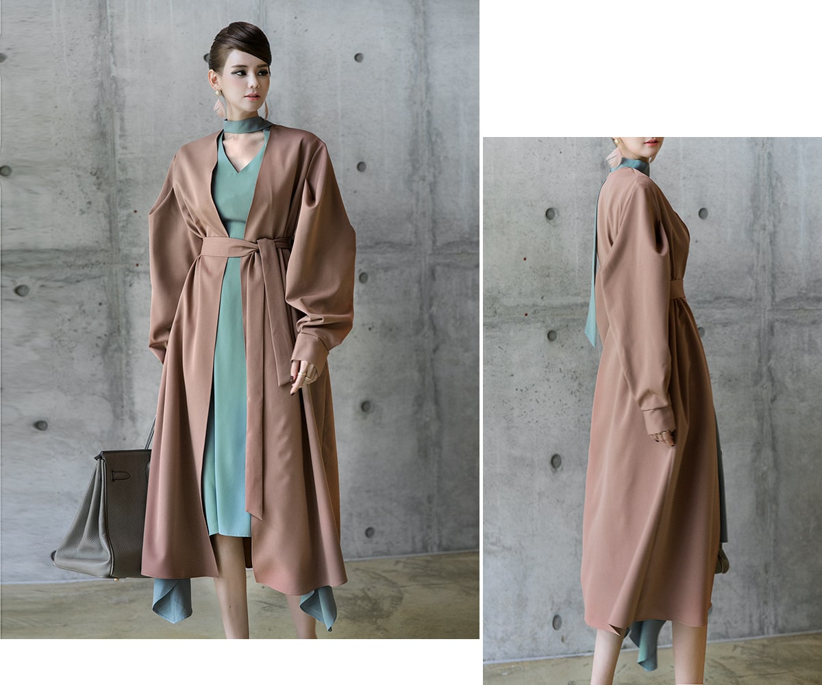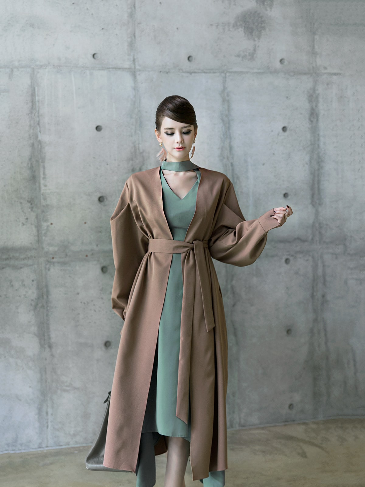J-5017 네추럴 핀턱 롱 코트(벨트set) Brick