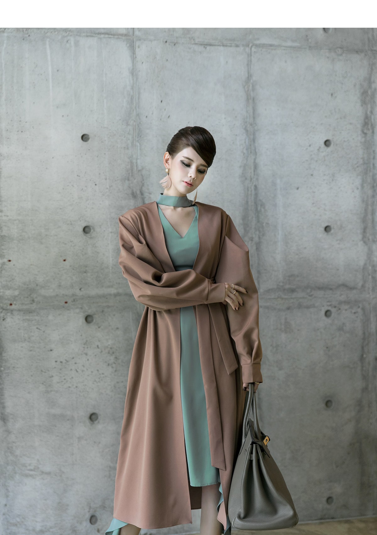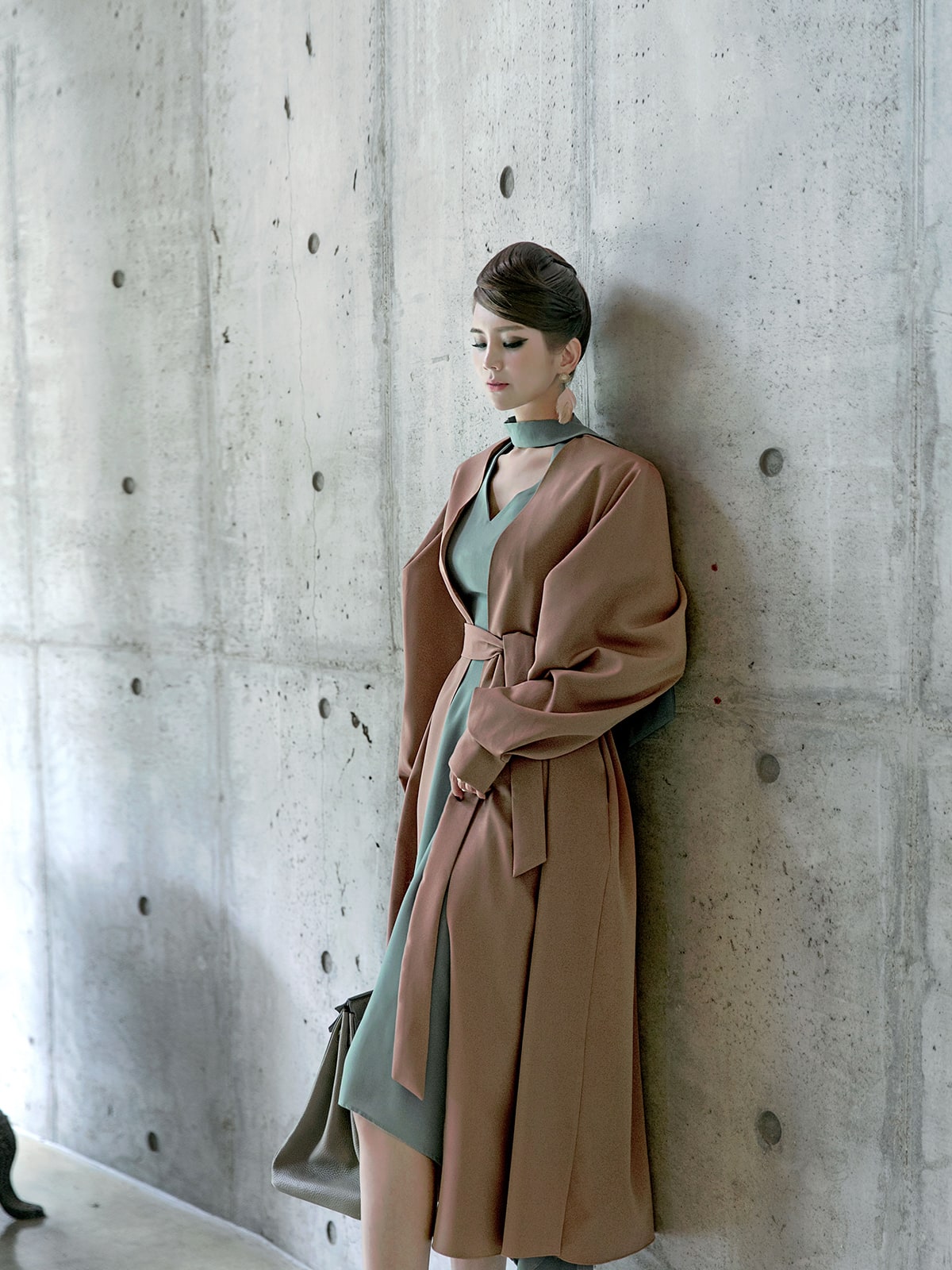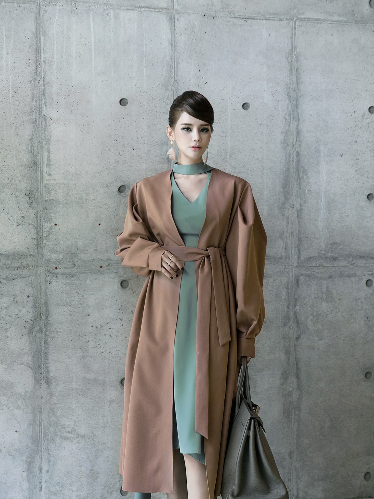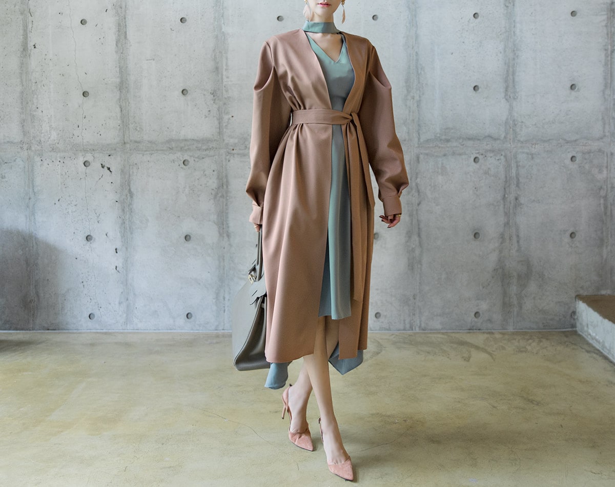 J-5017 네추럴 핀턱 롱 코트(벨트set) Brick