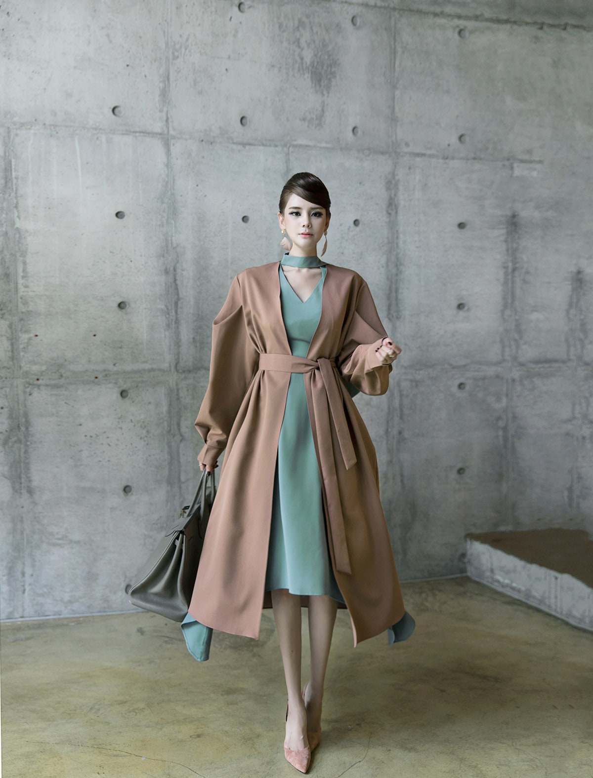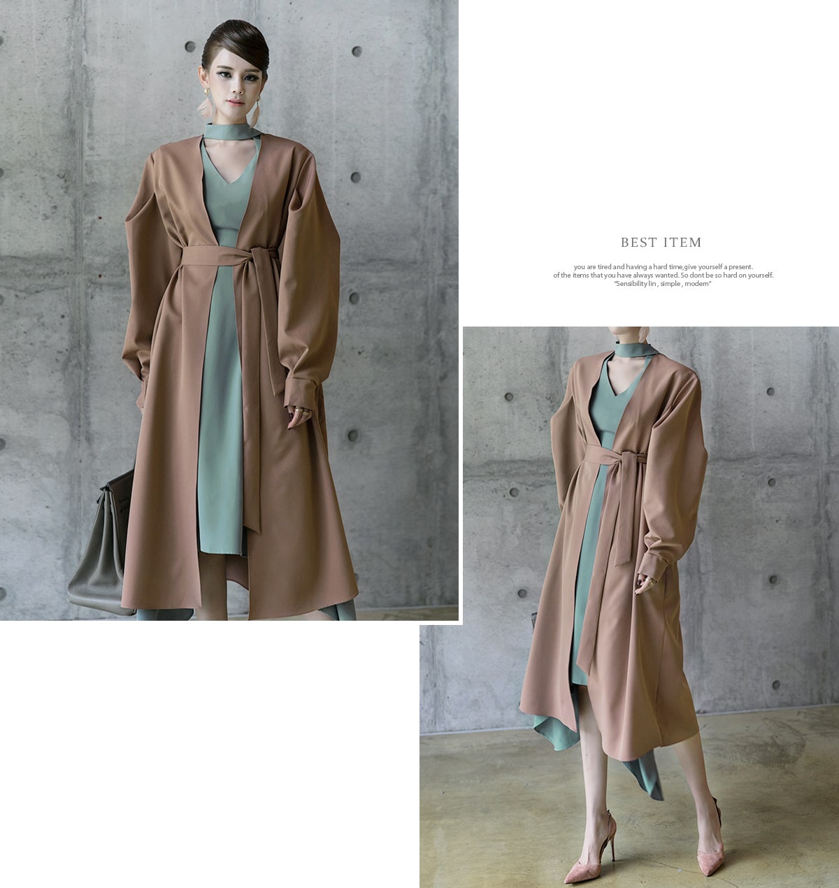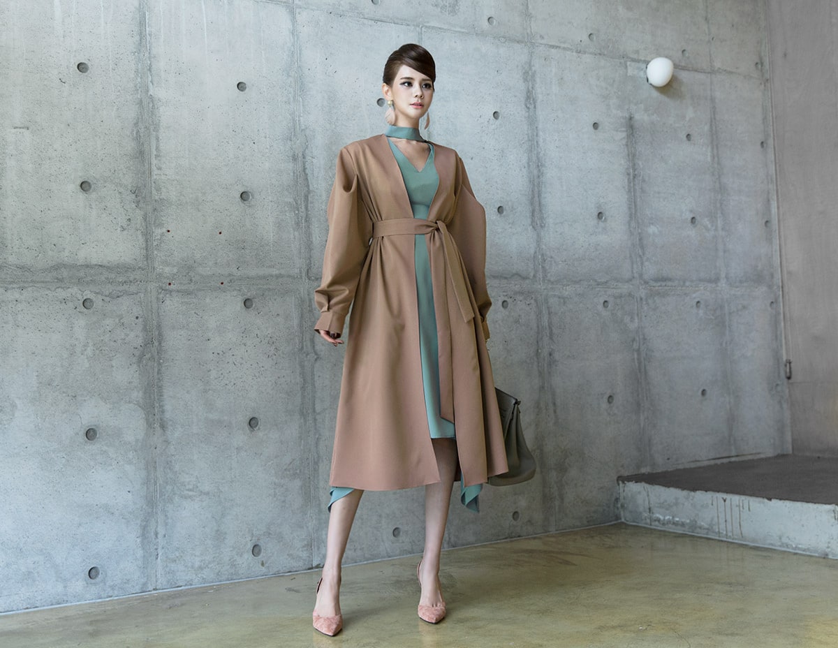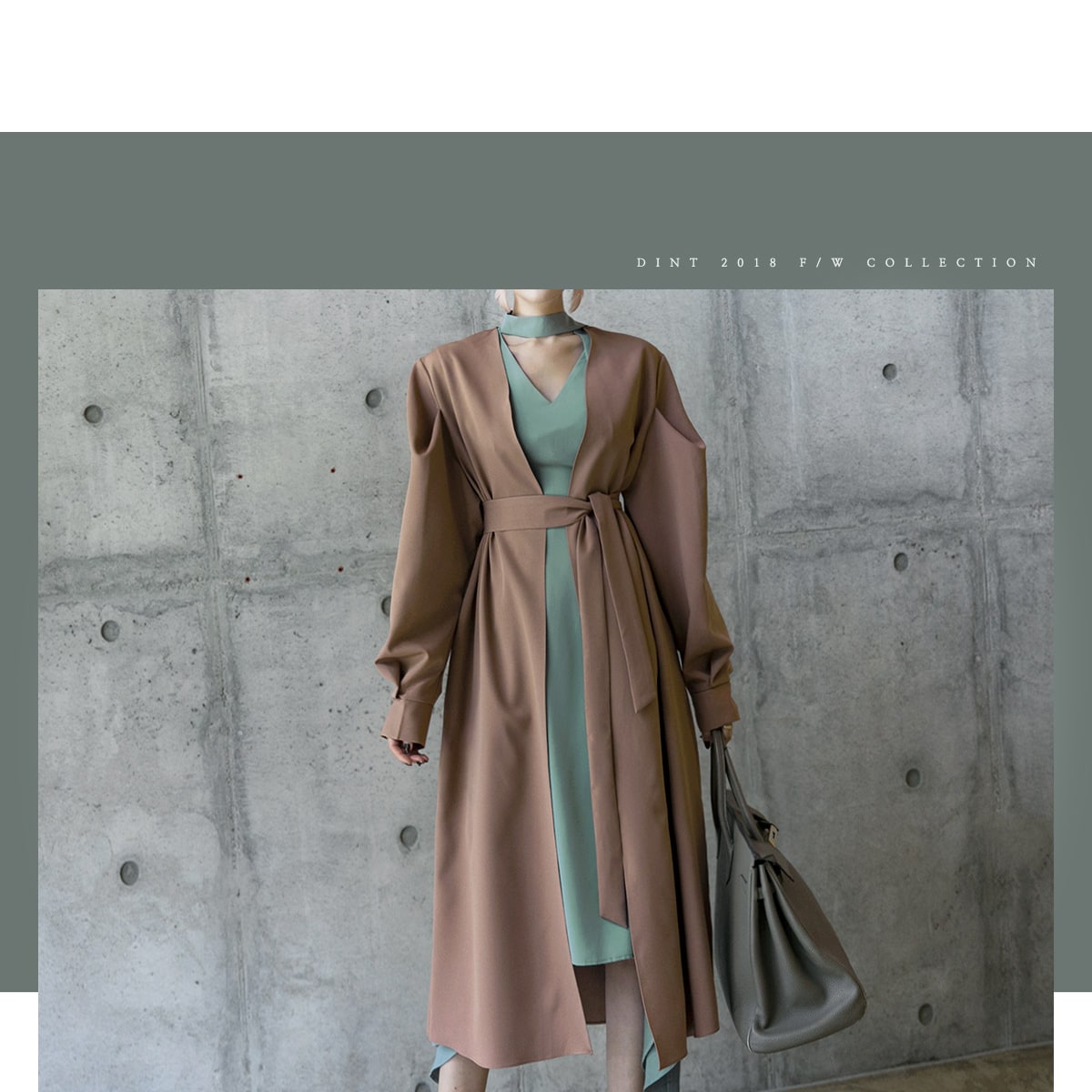 J-5017 네추럴 핀턱 롱 코트(벨트set) Brick