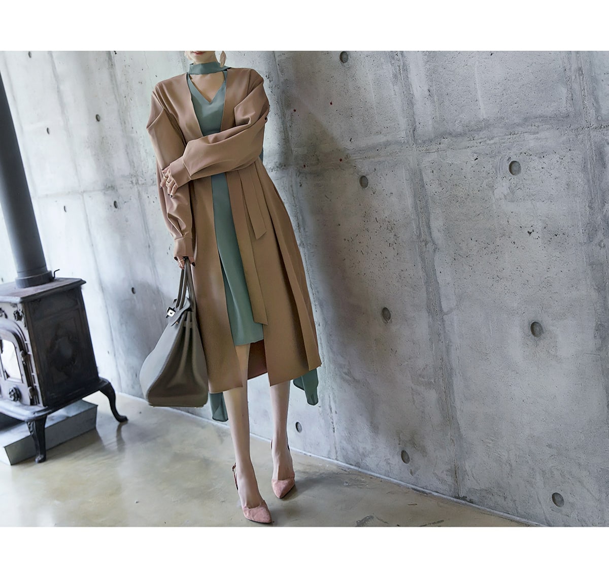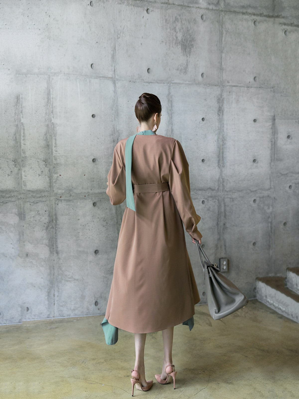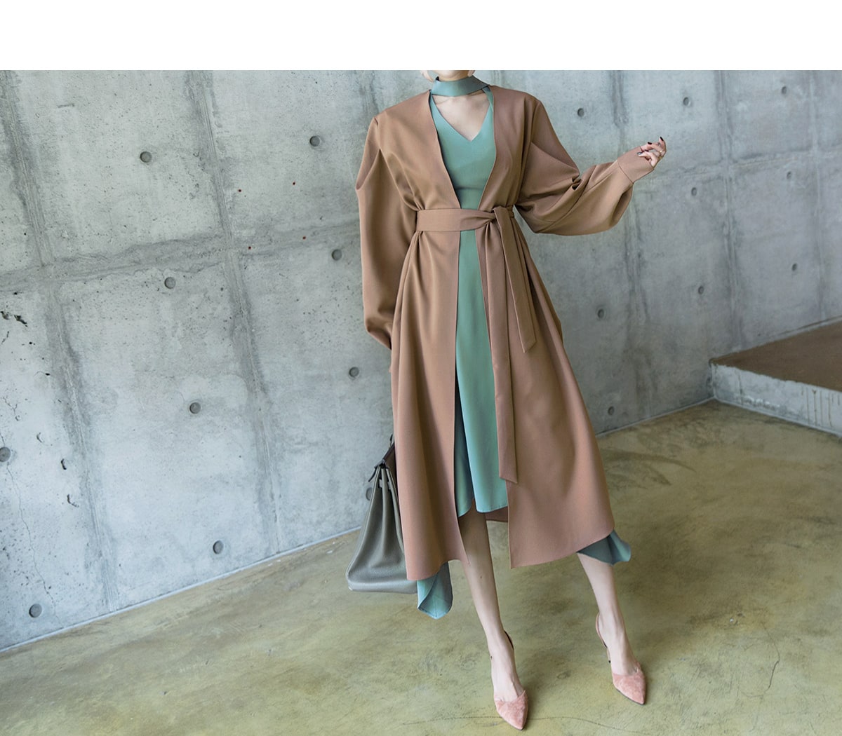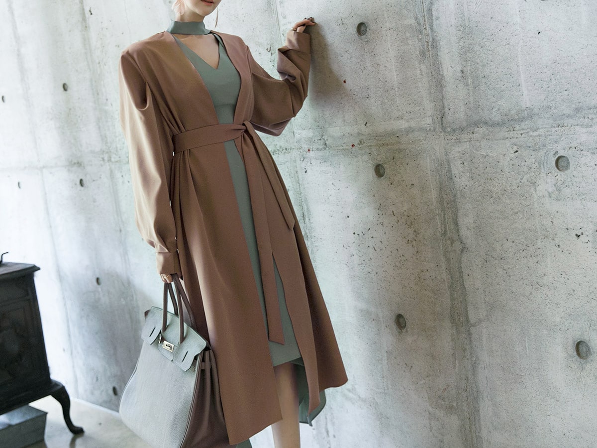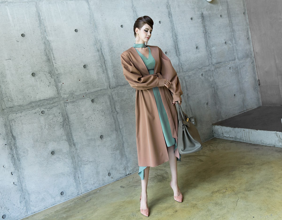 J-5017 네추럴 핀턱 롱 코트(벨트set) Brick