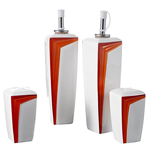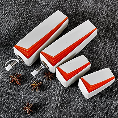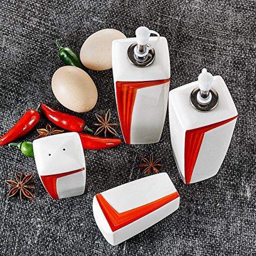 Malacasa, Series Rebeca, 4-Piece Ivory White Porcelain Cruet Set 6.25" Oil Vinegar Dispenser L*W*H: 5.5*4.5*16cm Weight: 228g 3.25" Salt Pepper Shaker L*W*H: 4.5*4*8.5cm Weight: 112g Package Content 2 * Oil Vinegar Dispenser 2 * Salt Pepper Shaker Made of Healthy and Durable China Porcelain, Harmless to Body Health, the Use of Safety. Simple Style Design Easily Matches with Existing Flatware in Your Kitchen, Dinner Essentials Set. Great for Home, Restaurants, Hotel and Cafes Use. Ideal for Everyday Use or any Special Occasions. Fired in high temperature, not easy to be broken. Safe in Freezer, Dishwasher and Microwave, Easy to Clean. 0 |