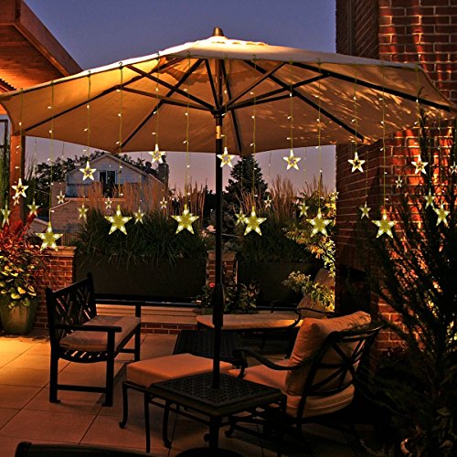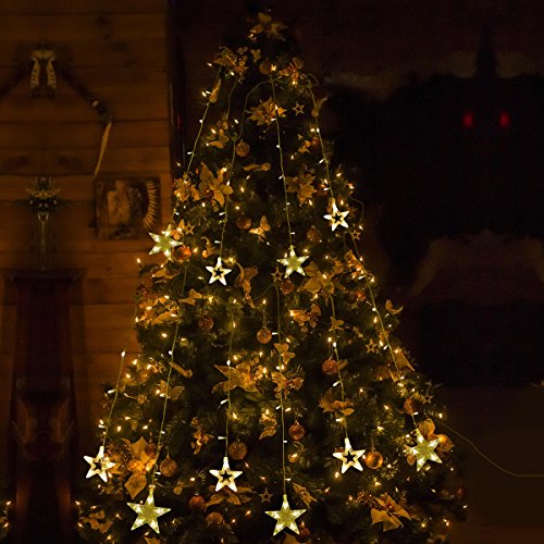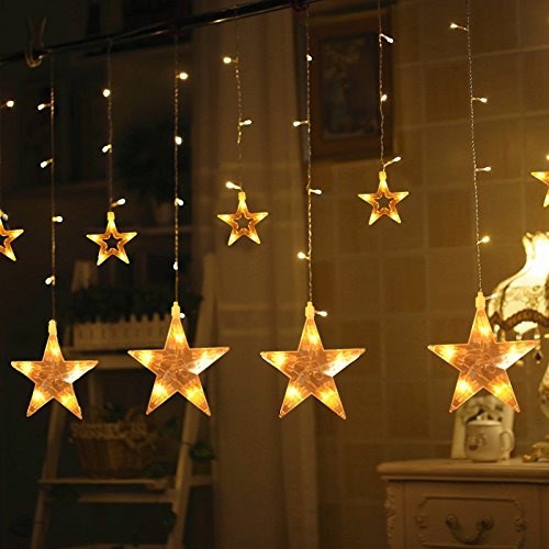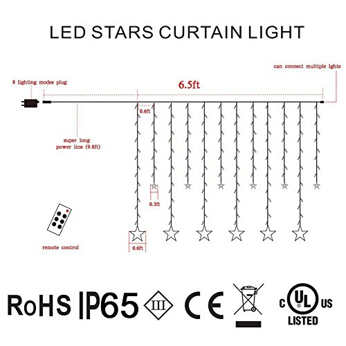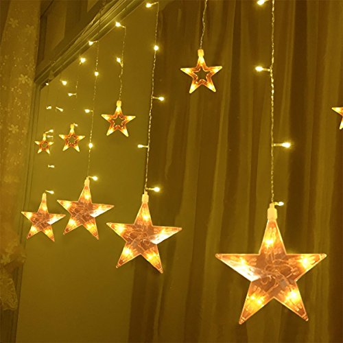 108 Leds curtain light with 12 big stars,with 12 hooks for easy installation, lets your home shine within a second !Great decor light for Christmas,Halloween,home,window,garden,Wedding,Birthday,Party.