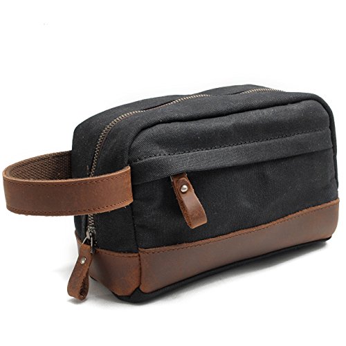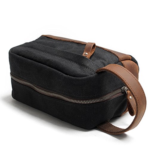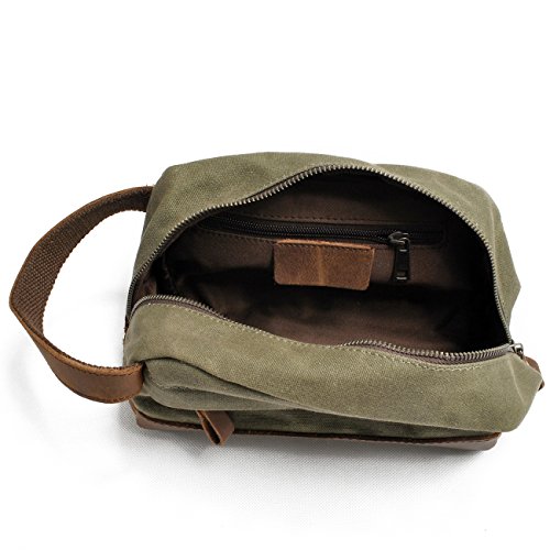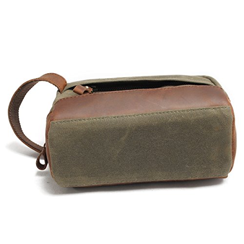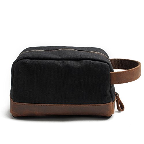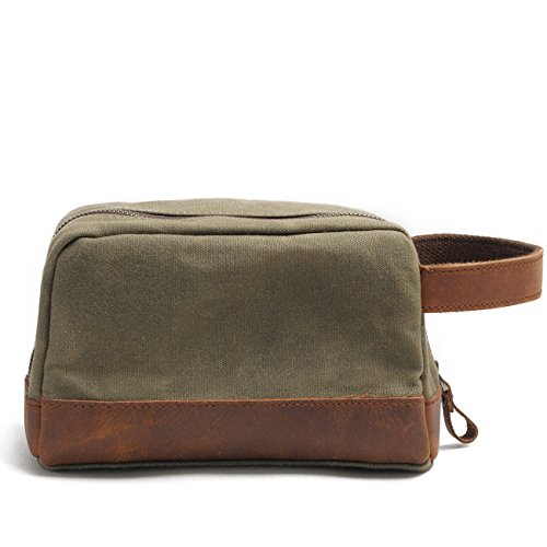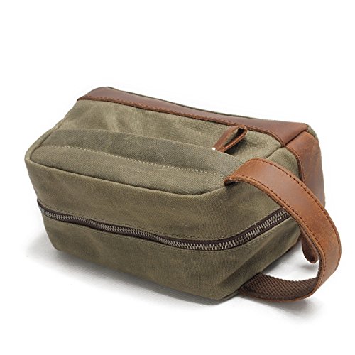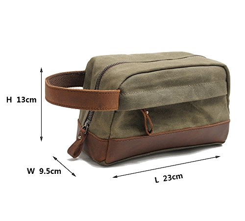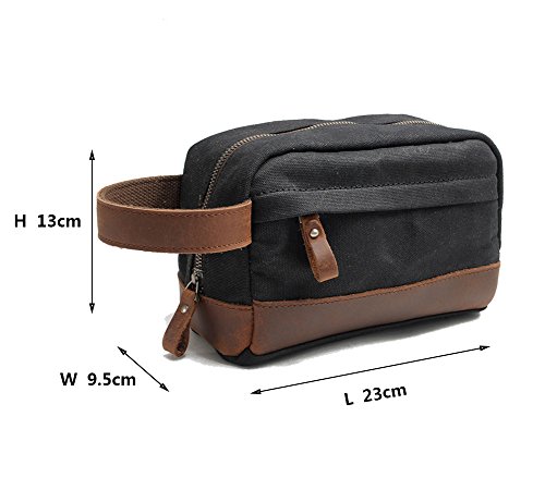 -. Feature : VINTAGE & CLASSIC DESIGN. High quality leather trim, waterproof lining and Martexin original wax canvas. / Waxed Canvas is a notoriously durable material that doesn't need to be babied, occasional reproofing with Martexin Original Wax can help keep your bag looking. It's very best for years to come. / Crazy Horse Leather is as durable as any other high quality leather, is highly resistant to water and other liquids, doesn't stain fabrics or clothing. It is the timeless antique and vintage look that begins to show almost immediately after use. / Smooth Zipper and Handle Strap. The leather pull that makes it easy to pull the zipper open and close, carry-on handle at the side that lets you carry it around easily. / Large capacity: 9.1 L X 5.1 W X 3.7 H inch. Travel organizers can put your facial cleansers, toiletries and other daily personal items. This travel bag perfectly fits easily into a backpack or suitcase for travel and it shows your extraordinary taste and makes you become fashionable and eye-catching at any places.