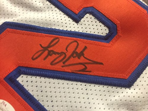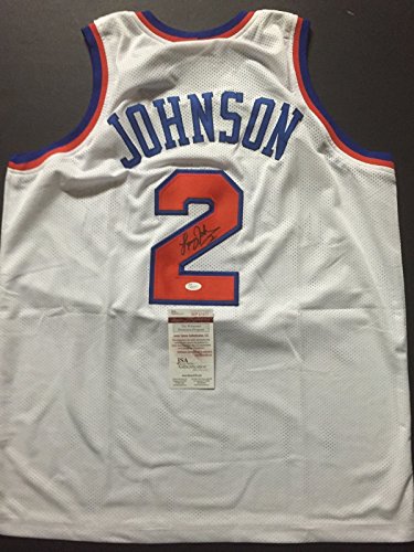 Autographed/Signed Larry Johnson New York Knicks White Basketball Jersey JSA COA