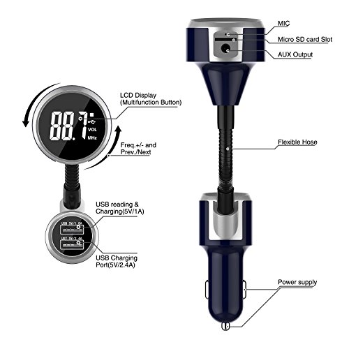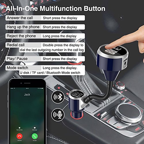 Studio : LDesign Publisher : LDesign Binding : Electronics Product Description Features 1: Echo cancellation and noise suppression (CVC) technology during a call 2: Bluetooth for Hands-free/answer/hang up/reject/redial/Private calling 3: Bluetooth stereo music play 4: 1.4" LCD Display 5: Auxiliary Audio output 6: Car Accumulator voltage detection 7: Supports Micro SD card (1G-32G) 8: Supports MP3/WMA format music play 9: FM transmitter 87.5-108.0MHz 10:Auto power-off memory function 11:Supports charging for mobile phone and tablet 12:USB1 supports for music playing from U-disk and charging output 5V/1A for mobile phone 13.USB2 supports charging automatic identification and charging output 5V/2.4A for mobile phone 14. Supports Bluetooth auto re-connection when power on 15.Supports?calling?ID