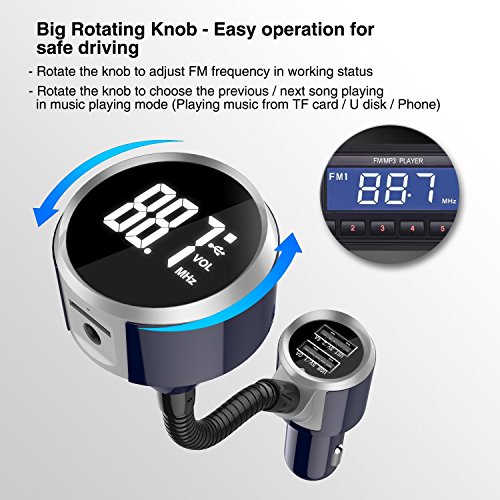 Specifications Rated Working Voltage: 12V~24V Limit Working Voltage: 9-26V Working Temperature: 0-60°C Supports Music Format: MP3/WMA Battery Voltage Display Accuracy: Error±1V SNR: >60dB Degree of Distortion: <0.1% Frequency Response: 20Hz-20Khz Left and Right Channel: >60dB Bluetooth Version: Version 4.2 EDR Bluetooth Sound Processing: A2DP (Advance Audio Distribution Profile) function supported Bluetooth Transmission Distance: Barrier-free within 10M Effective Distance of Bluetooth Microphone: 0.5-1.5M FM Frequency: 87.5-108.0Mhz Launch Effective Distance: <2m USB Ports: USB 1 - Music playing from U disk, Charging output 5V / 1A USB 2 - Charging output 5V/2.4A