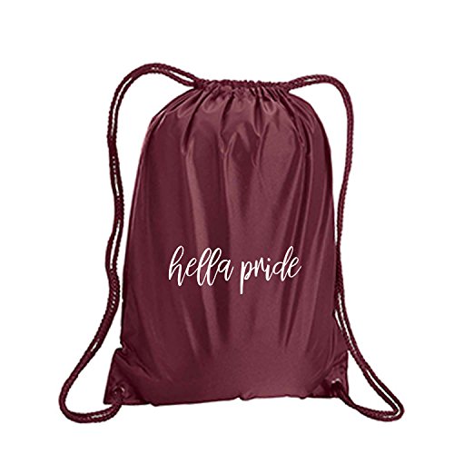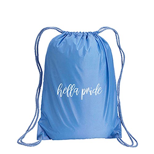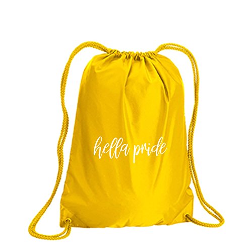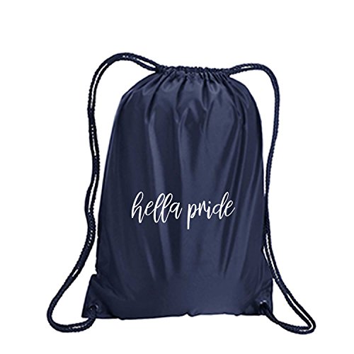 Product Description This durable and stylish nylon tote features "hella pride" on a cinch pack tote with white ink. Bag comes in small and large sizes and is made of a durable 210 Denier nylon and has color-matched draw cords. Printed in the USA on an imported bag. 0