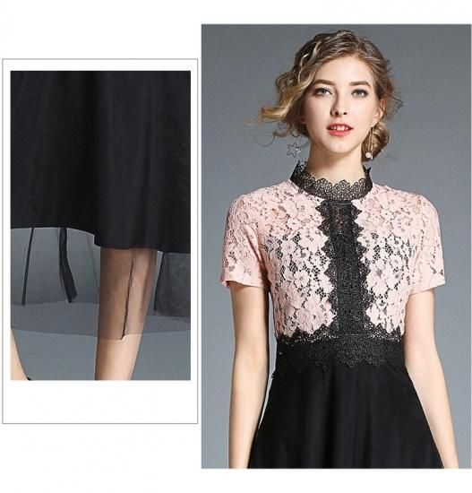 甘いピンクのレースに、黒のレースラインとウエストマークが引き締めてくれます。