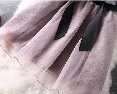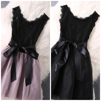 パーティードレス ミニ丈 ワンピース レース ウエストリボン シフォン ガーリー 大人 可愛い 上品 お呼ばれ drgz2645