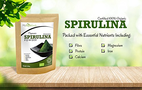 -. Title : Organic Spirulina Powder (500 grams / 1.10 lbs)| MySuperFoods | Packed with Protein, Calcium and Vitamins | Nutrient Rich | Highest Quality Available | Certified Organic by the Soil Association