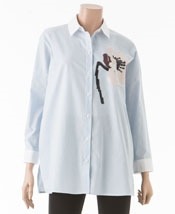 플라워 스팡글 자수 디테일로 요즘 유행하는 스트라이프 셔츠에 만의 감성을 더했습니다.
