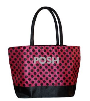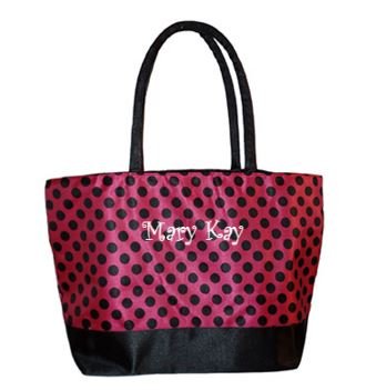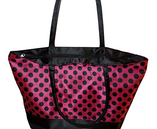 -. Title : Custom Personalized Hot Pink & Black Polka Dot P.R.Int Shopping Cosmetic Tote Bag