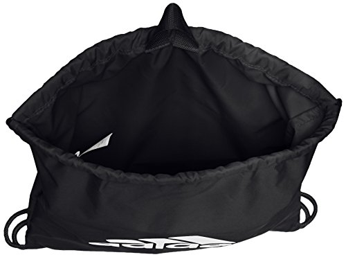 Product Description The ultra-lightweight and no-fuss design of this gym bag makes it easy to stash your training essentials and get out the door. Finished with an adidas logo, it has a single roomy compartment that holds your gear and closes shut with one pull on the drawcord shoulder straps. 0