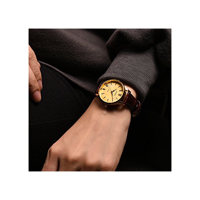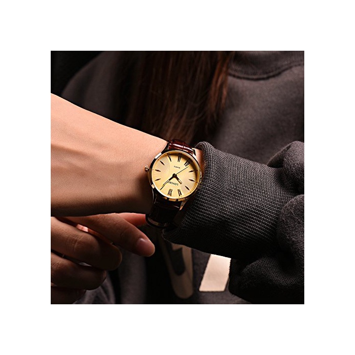 원본상품명: Rockyu ブランド 腕時計 ペアウォッチ メンズ レディス 人 時計 ビジネス サファイアガラス ブラック ブラウン 革 バンド 防水 (女, ブラウンバンド金文字盤) [行輸入品]