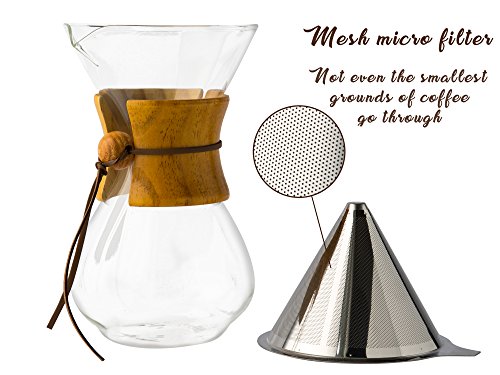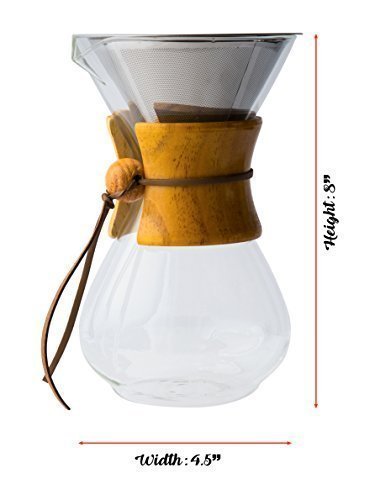 The first thing you'll notice is the elegant, beautiful design of the Glass Design Clever Coffee Dripper by Comfify. It's made from glass, with sultry curves and a sophisticated look that includes a perfectly fitted polished wood collar and leather tie. It improves the look and style of your kitchen!