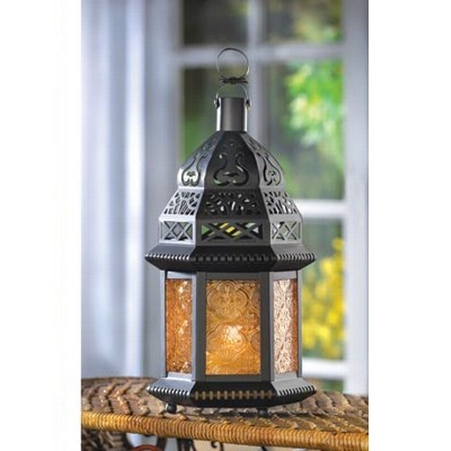 -. Title : Gifts & Decor Yellow Glass Moroccan Lantern Candle Holder Light Decor