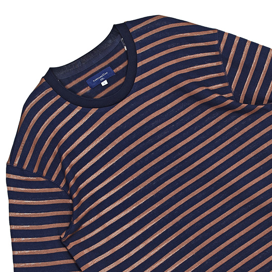 - 소프트한 조직감이 돋보이는 스트라이프 남성 티셔츠.