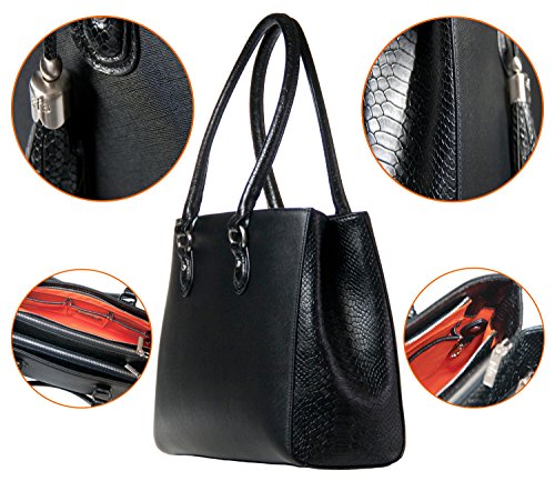 -. Binding : Personal Computers -. Brand : BfB -. Feature : DESIGNED BY A WOMAN - The Jennifer Laptop Tote is Stylish, Fashionable and Professional - 3 zippered compartments - use as a beautiful tote/handbag/shoulder bag or as a business briefcase or work bag - 2 padded sections - one for 13 inch laptop - one for tablet/iPad- great handbag shape - FASHIONABLE AS WELL AS FUNCTIONAL / NO MORE ACHING SHOULDERS - Gorgeous Faux Textured Leather and Snakeskin with colorful lining - Signature BfB tassel for glamor and quality - Brushed Nickel Hardware - Detachable strap for wearing cross body - LIGHTWEIGHT AND DURABLE - AIRPORT FRIENDLY AND IDEAL FOR TRAVEL. / BE AMAZED how much this bag can carry - 3 x inside side pockets for cell phones, sunglasses, business cards, credit cards etc - much more practical than a messenger or satchel - PLUS handy clip for your keys so you never lose them again - BEAUTY AND BRAINS COMBINED. / Approx. Size: 15.5"W x 10"H x 5"D - Handle Drop 10 inches to comfortably fit over your shoulder PLUS detachable shoulder strap to be hands free - THE ONLY BAG YOU NEED ON A BUSY WORKING DAY. / Every Handbag from My Best Friend is a Bag is HAND MADE with 100% MANUFACTURER'S GUARANTEE AGAINST FAULTY WORKMANSHIP - ORDER NOW with absolute peace of mind - The BEST INVESTMENT YOU'LL MAKE IN YOUR BUSINESS WARDROBE -. Label : My Best Friend is a Bag -. Manufacturer : My Best Friend is a Bag -. PackageQuantity : 1 -. ProductGroup : PC Accessory -. ProductTypeName : CARRYING_CASE_OR_BAG -. Publisher : My Best Friend is a Bag -. Studio : My Best Friend is a Bag -. Title : BfB Business Tote Laptop Bag for Women - Lightweight Hand Made Notebook Computer Tablet iPad Shoulder Handbag - Designed for Busy Working Women - Business Can Be Beautiful