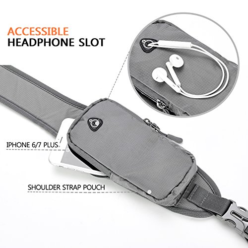 HIGHLIGHT DETAILS: The side pocket with adjustable buckle is strong enough to keep water bottles or umbrellas up when crossing over the mess. The shoulder strap pocket with headphone access is convenience for you to put IPHONE 6/7 plus and listen to music. The shoulder strap is adjustable and can be switched to the either side. Anti-sway Waist belt design is good for avoiding waving when you're wearing.